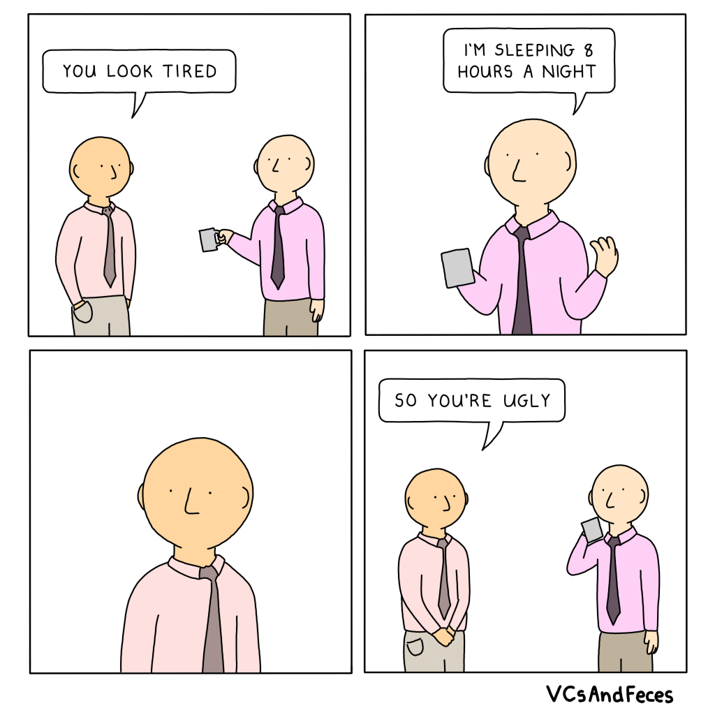 You Look Tired vcsandfeces Uncategorized November 9, 2022 Share this: Click to share on X (Opens in new window) X Click to share on Facebook (Opens in new window) Facebook Like Loading... Related Published November 9, 2022